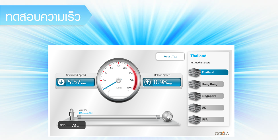 • เลือกเซิร์ฟเวอร์ในการทดสอบที่อยู่ไกล ส่งผลให้ค่าหน่วงสูงและความเร็วตก
